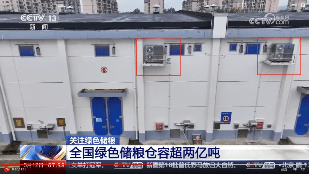 Kingfit grain air conditioner is specially developed for low-temperature grain storage of air conditioning products, with 10 ~ 26 ℃ out of the wind temperature wide-area adjustment, accurate temperature control ± 1 ℃, information technology control, 20 meters of ultra-long-range, multiple protections, and many other advantages and features, can fully solve the storage of grain temperature control problems, is to ensure that the green storage of grain, science and technology, grain storage of the right-hand man. (Image source: CCTV News)