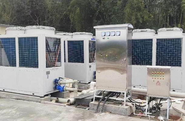 按照負荷我們采用的是可以直接對水源進行加熱的空氣源熱泵機組。