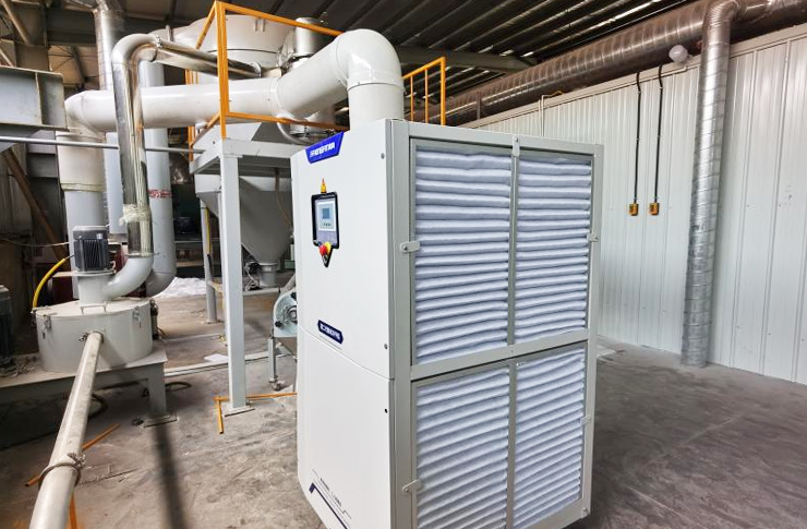 Customer workshop a total of 19 production lines, production capacity of 500kg / h, the choice of the wind of a one-to-one powder cold dryer unit 17 units; customer plant cooling pool of 200m ³, now increase the wind of 4 sets of air-cooled modular chiller to cool the pool, the water temperature control of 10 ° C. All refrigeration systems are basically complete, the mill can be directly packaged and sealed boxes. All the refrigeration system is basically perfect, the mill can be directly packed and sealed.